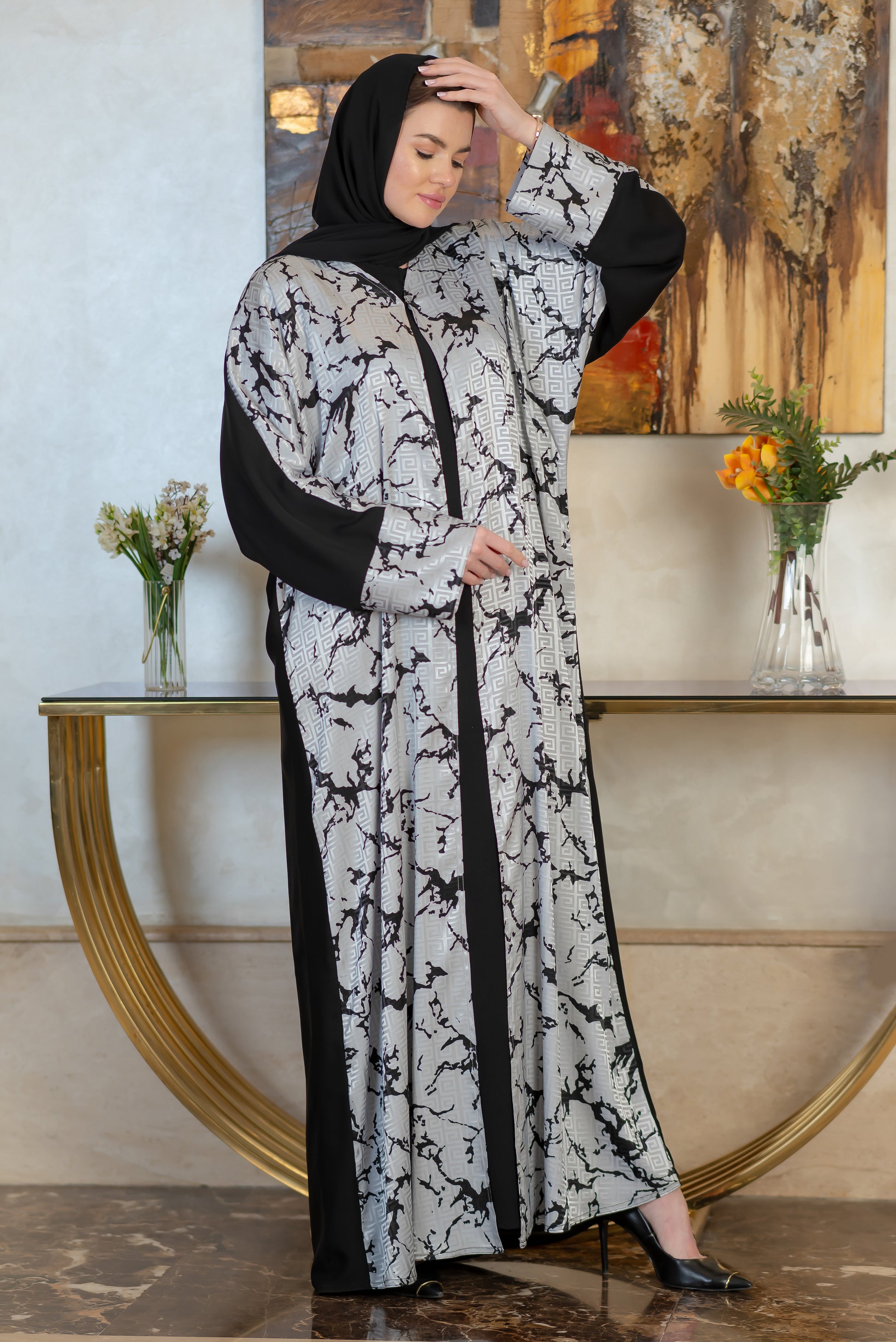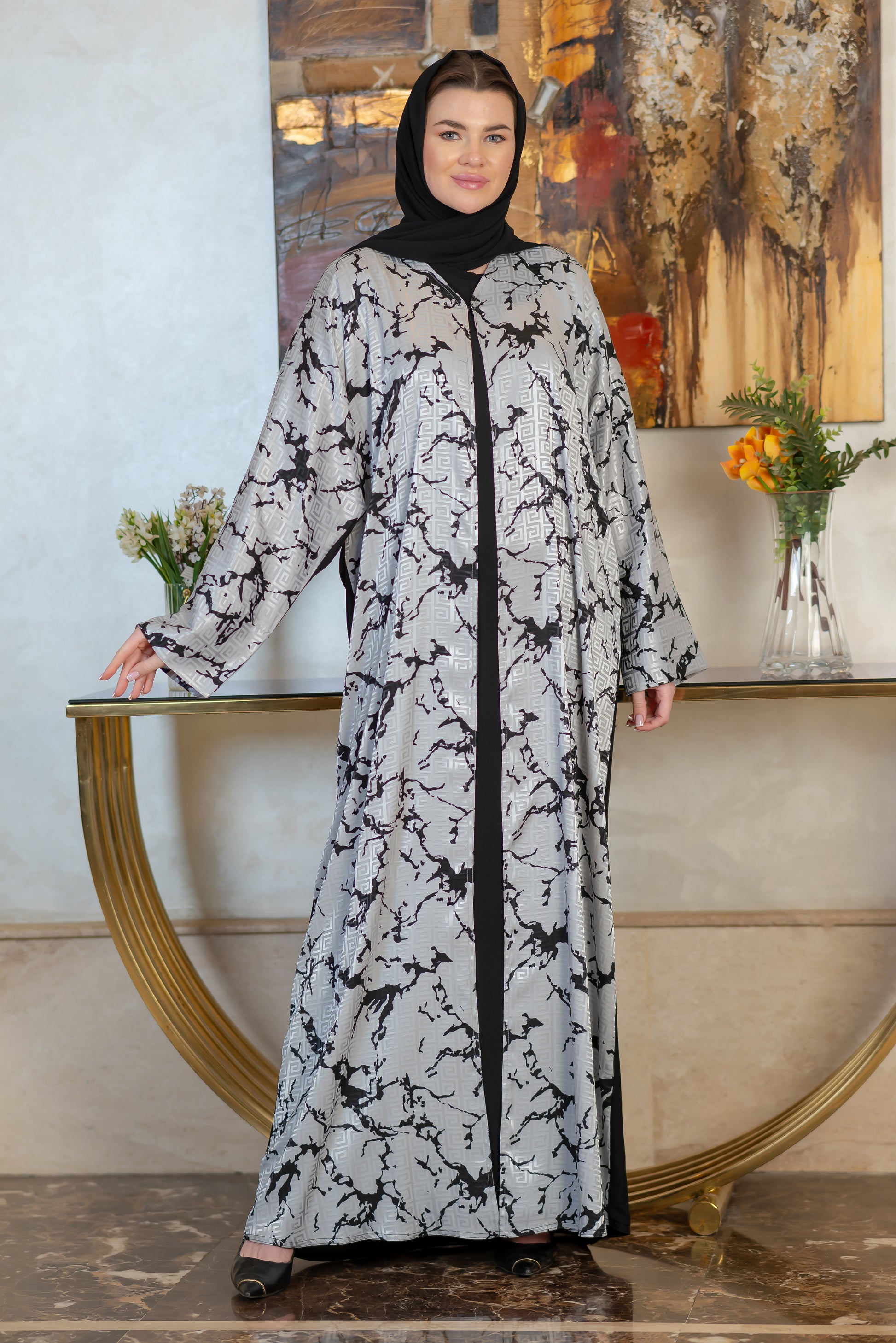 إسدال بشت فيرساتشي مقفول فضي